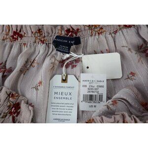 This American Eagle Outfitters top features a charming floral design with a flattering off-shoulder style. Made from a blend of cotton and rayon, it offers comfort and breathability. Its crop length and tie-front design add a modern touch, ideal for showcasing a casual, stylish look.