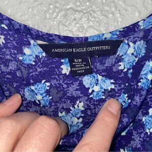 American Eagle Outfitters Floral Print Scoop Neck Peplum Tank Top Blue S/P