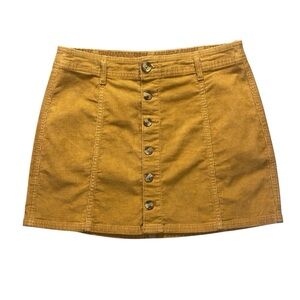 Pre-owned good condition This stylish mini skirt from American Eagle Outfitters features a vibrant gold hue and a flattering A-line silhouette, perfect for casual outings. Its mini length adds a playful touch, while the sturdy fabric ensures durability and comfort. Offers accepted.