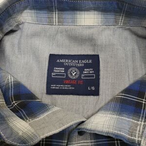American Eagle Outfitters Gray Blue Plaid Pearl Snap Shirt Vintage Fit Men’s L