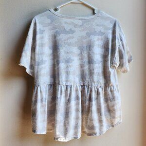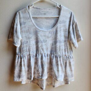 American Eagle Outfitters Gray Camo Scoop Neck Ruffled Jersey Size Small