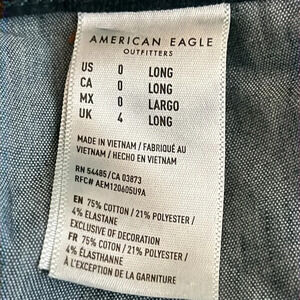 American Eagle Outfitters Hi-Rise Corduroy Jegging in Teal - Size 0. Excellent pre-owned, like new condition. These are tagged as a size 0 Long but I think the previous owner cut some length off. The leg hems are now raw. They must not have like them as there are no signs of wash or wear. Skinny fit, 4 pockets, corduroy fabric, zip fly with button closure, super stretchy, raw hem. Approximate measurements: 13" waist, 9" rise, 26 1/2" inseam.