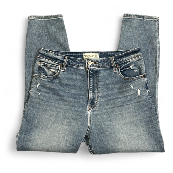 Trendy high rise jeans with a distressed look. Comfortable and stylish for everyday wear.