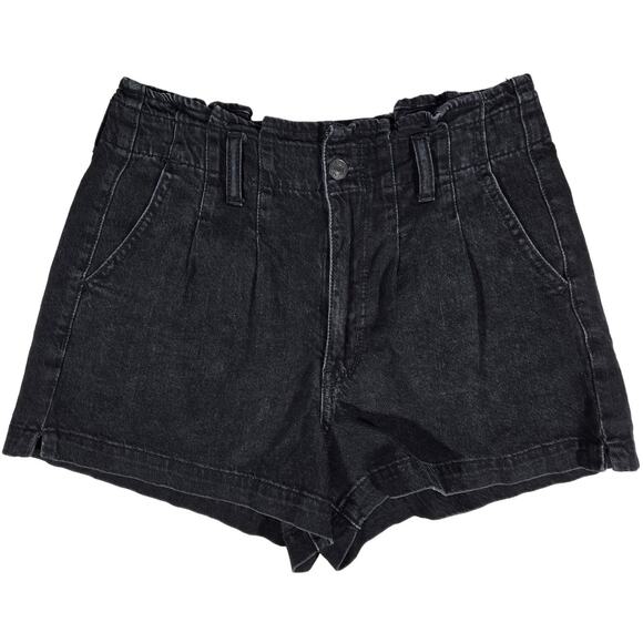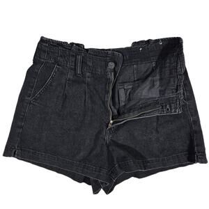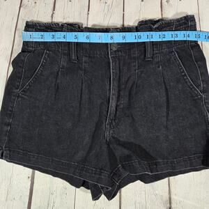 American Eagle Outfitters High Waisted Denim Shorts Black Paper Bag Waist Size 6