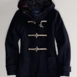 American Eagle Outfitters hooded coat, w/petticoat waist, quilted interior, and toggle clasp tortoise buttons, with two exterior pockets; super warm & perfect for fall, and winter with a sweater.