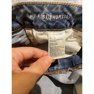 American Eagle Outfitters Jean Shorts Women’s Sz 6 Blue Super Stretch high rise shortie Distressed