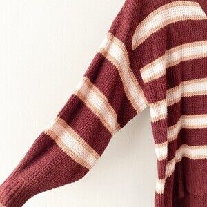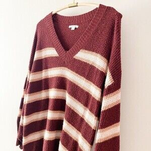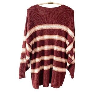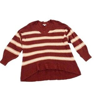 American Eagle Outfitters Knit Stripe Burgundy and Pink Hi Lo V Neck Sweater XL
