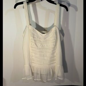 American Eagle Outfitters Lace & Chiffon Pleated Cami Tank Top Cream Size L