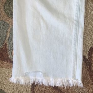 Stylish light blue flare jeans. Wide leg design. Frayed hem for a trendy look. Perfect for casual wear.