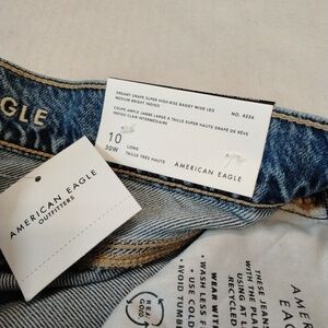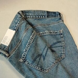 Stylish light blue flare jeans. Perfect for a trendy look.
