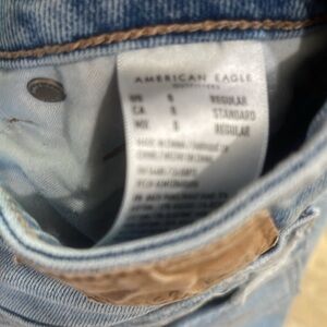 American Eagle Stylish light blue boho crop denim jeans. Cute distressed look with boho fabric peek Ideal for everyday wear.