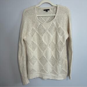 American Eagle Outfitters Light Cream Crew Neck Knit Textured Sweater Medium