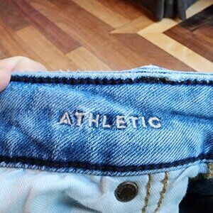 American Eagle Outfitters Light Wash "Athletic" Straight Leg Jeans Size 30x30. Slight smudge on one knee. May come out during a wash with a little stain remover. Otherwise excellent condition.