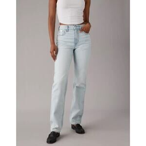 American Eagle Outfitters Size 12 Long Light Wash Super High Rise Straight Jeans