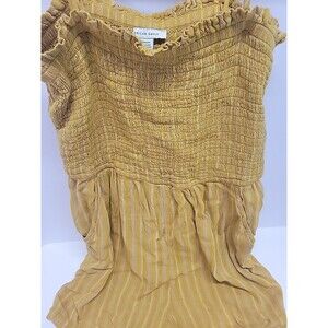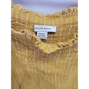 The American Eagle Outfitters Linen Summer Beach Striped Halter Romper is a stylish one-piece summer outfit perfect for travel or casual wear. Made from a comfortable blend of linen and viscose, this sleeveless romper features a halter neckline and pullover closure for easy wear. The yellow striped pattern adds a fun and beachy touch, while the straight leg style and regular fit provide a flattering silhouette. Machine washable for convenience, this romper is a practical and chic choice for hot summer days.