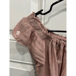 American Eagle Outfitters Mauve Off Shoulder Embroidered Boho Baby Doll Top Sz M