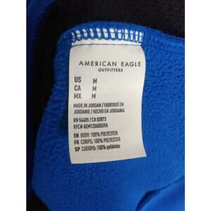 American Eagle Outfitters Mens Blue Polar Fleece Hoodie Pullover Sweatshirt Sz.M