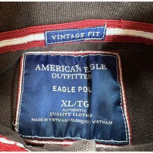 American Eagle Outfitters Men’s Brown SS Polo Vintage Fit Red Eagle Logo Size XL