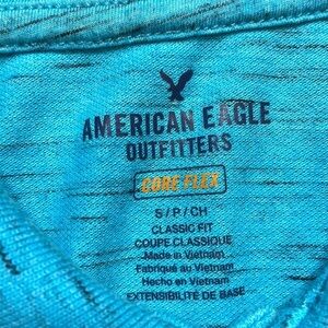 American Eagle Outfitters Men’s Teal Core Flex Classic Fit Blue Short Sleeve Polo Tee, size small. In excellent used condition. See pictures for measurements and fabric content.