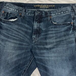 Stylish dark blue jeans. Classic fit with durable fabric. Ideal for everyday wear.