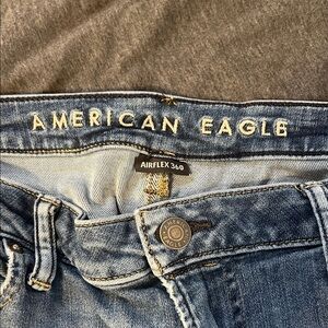Stylish medium blue jeans with classic stitching. Comfortable fit for everyday wear.