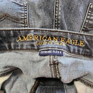 These American Eagle Outfitters jeans offer a blend of cotton and polyester with a hint of elastane for a flexible fit. Designed for comfort and style, the Extreme Flex 4 fabric ensures ease of movement. The classic design makes it a versatile addition to any wardrobe.