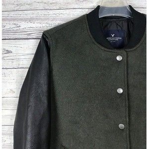 American Eagle Outfitters Men's Green/Black Wool mix Varsity Bomber Jacket Small