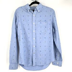 American Eagle Outfitters Men’s Hula Girl Chambray Classic Fit Shirt Blue Small