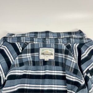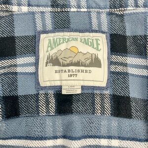 American Eagle Outfitters Men's Large Thick Flannel Shacket Blue Plaid Cabincore. Buttondown thick plaid shirt that can be worn unisex. Has buttons in collar for hood, bot included.