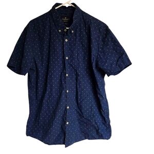 American Eagle Outfitters Men's Navy Blue Patterned Shirt XL Short Sleeve Button