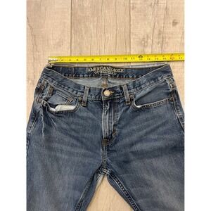 Keywords: American Eagle, mens jeans, bootcut, denim, casual, everyday wear, versatile, comfortable fit, laid back style, mid rise, distressed denim, classic wash, light wash