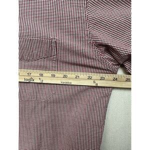 This American Eagle Outfitters men's shirt in size Large features a classic chambray long sleeve button-up with a solid red plaid pattern. Made of cotton with a collared neckline and button closure, this shirt is suitable for various occasions such as travel, casual outings, workwear, and business meetings. The shirt has a Western cowboy theme and regular fit, making it a versatile addition to any man's wardrobe. Easy to care for and suitable for all seasons, this shirt also includes pockets for added functionality.