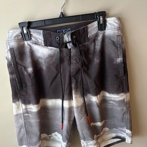 American Eagle Outfitters Men's Small Drawstring Swim Trunks Black Grey Red