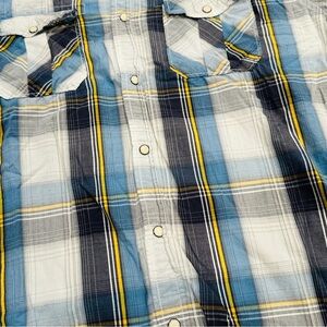 American Eagle Outfitters Mens Vintage White Blue Yellow Short Sleeve Button Down Shirt - EUC - Size XXL