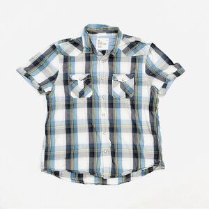 American Eagle Outfitters Mens Vintage White Blue Yellow SS Button Down Shirt