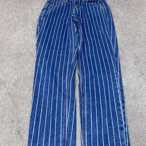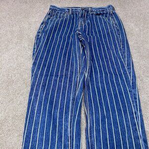 American Eagle Outfitters Mom Jeans Blue White Striped Pockets Size 2