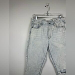 American Eagle Outfitters Mom Jeans Light Wash High Rise Denim Raw Hem Sz 12