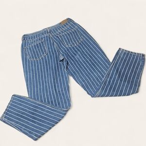 Classic and stylish, these American Eagle Famous Mom Jeans feature their well-loved white pinstripe design. Made for comfort with a flattering high rise, they’re versatile enough to pair with a casual tee or a dressy top.