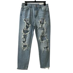 American Eagle Outfitters Mom Blue Mist Distressed Mom Jeans(Size 6Regular)