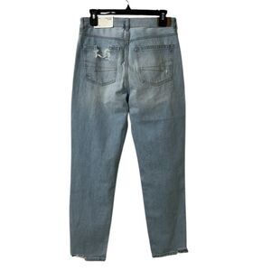 American Eagle Outfitters Mom Blue Mist Distressed Mom Jeans.Zipper & Button Closure.Approx measurement Waist 28”,Rise 11”,Inseam 27”, Length 38”.NWT