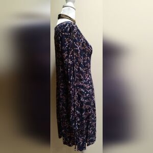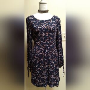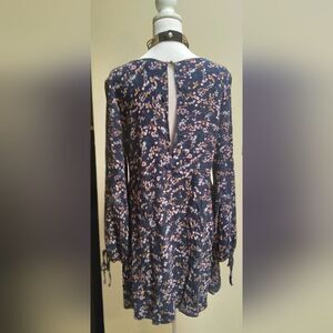 American Eagle Outfitters Navy Blue Floral Babydoll Dress Long Slit Sleeves