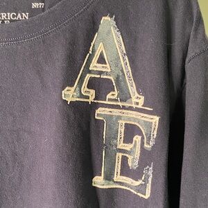 Stylish navy long sleeve tee. Features bold 'AE' logo on chest. Comfortable and casual.