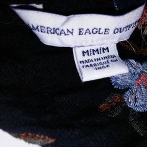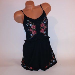 American Eagle Outfitters One Piece Romper Medium Black Red Stretch Floral Embro