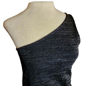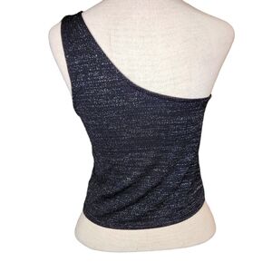 American Eagle Outfitters black with silver metallic, one shoulder, crop top