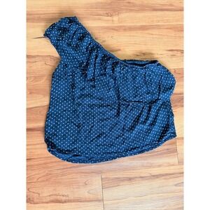 American Eagle Outfitters One Shoulder Top Blue Polka Dot Blouse Size S