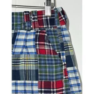 American Eagle Outfitters patchwork plaid micro mini skirt. Crafted from 100% cotton, this lightweight, breathable skirt features a colorful patchwork plaid design with shades of red, navy and light blue. The mini length and A-line/straight cut make it perfect for spring, summer, and fall.