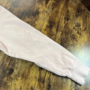 Soft pink hoodie with front logo. Comfortable and stylish. Perfect for casual wear.