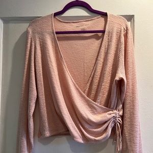 American Eagle Outfitters Pink Long-Sleeve V-Neck Sweater
