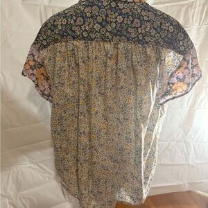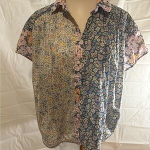 This eye-catching button down shirt from American Eagle Outfitters features a unique blend of pink and blue floral patterns. The contrasting designs create a bold and stylish look, perfect for making a statement. Ideal for casual outings, this top combines comfort with a touch of flair.