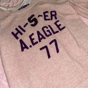 This off-the-shoulder sweater from American Eagle Outfitters showcases a beautiful blend of pink and purple hues, perfect for a stylish look. The relaxed fit and soft fabric make it a comfortable choice for casual outings or cozy nights in.